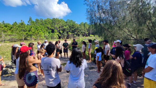 • Mais de 2.800 mudas de pinus — espécie exótica invasora — de médio e pequeno porte foram retiradas, abrindo espaço para a regeneração natural da vegetação nativa da restinga.