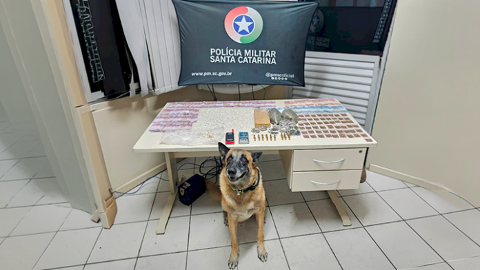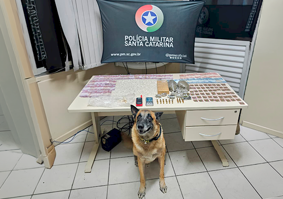A Polícia Militar de Santa Catarina (PMSC), por meio do 7º Batalhão de Polícia Militar (BPM) e da Guarnição de Policiamento com Cães (Canil), realizou a apreensão de drogas, munições e materiais utilizados no tráfico, na noite de segunda-feira, 27, em São José.