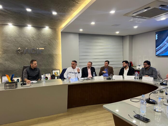 A Associação Empresarial de Florianópolis (ACIF) recebeu, na reunião de sua Diretoria Executiva (Direx) desta terça-feira (12), o chefe de gabinete do prefeito Topázio, Fábio Botelho, acompanhado dos secretários municipais Rafael Hahne e Juliano Pires. Na ocasião, foi anunciado em primeira mão a conclusão do estudo técnico que embasará a análise de viabilidade do transporte marítimo na cidade. A apresentação integrou o panorama do programa Floripa Integrada, que reúne obras concluídas, projetos em andamento e ações estruturantes para a mobilidade urbana da Capital.