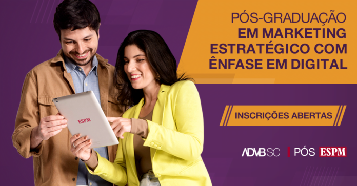 A Associação dos Dirigentes de Vendas e Marketing do Brasil (ADVB/SC), firmou parceria com a ESPM para o curso híbrido de pós-graduação em marketing estratégico com ênfase em digital. A taxa de inscrição para o processo seletivo é gratuita e as inscrições podem ser realizadas até 21 de março. Associados da ADVB/SC terão 10% de desconto nas mensalidades durante todo o curso.