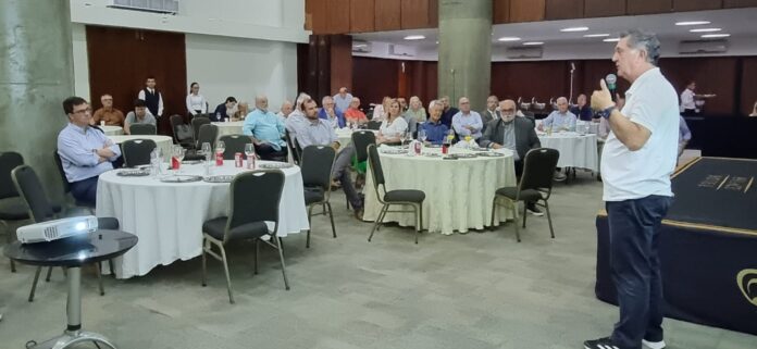No almoço, o coordenador de Planejamento Urbano e Mobilidade do FS e ex-prefeito de Curitiba Cássio Taniguchi palestrou sobre “Mobilidade e o Plamus – Plano de Mobilidade Urbana Sustentável da Grande Florianópolis”. Além de urbanista e especialista na área de Mobilidade, Taniguchi também foi coordenador do Plamus em 2015, quando foi criado.