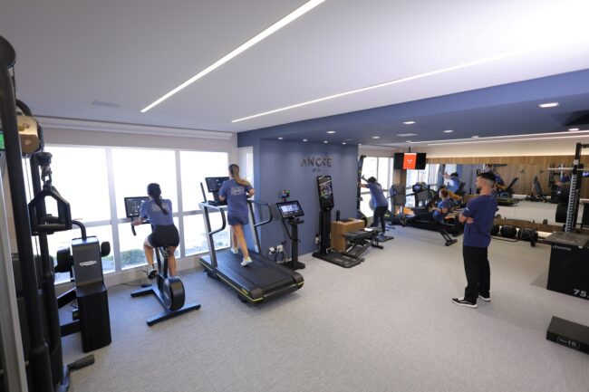 Além disso, a estrutura inclui esteira que analisa padrão de passada e simetria, bike que simula rotas icônicas do circuito mundial e BlazePod, uma tecnologia interativa de reflexo e tomada de decisão usada em protocolos de performance e reabilitação. Todos os dados gerados podem ser sincronizados com equipamentos Technogym em qualquer lugar do mundo, garantindo continuidade e qualidade no acompanhamento, mesmo em viagens ou treinos fora da unidade.