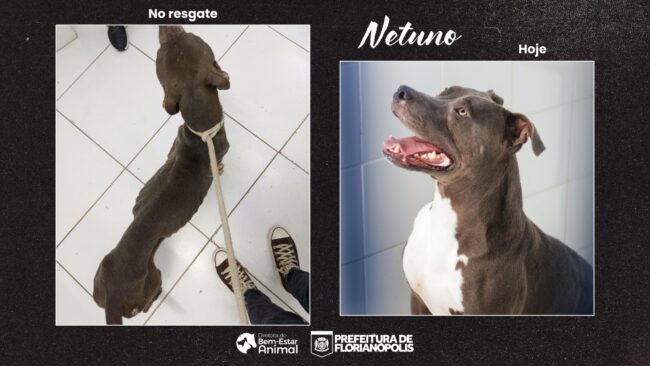 Já Netuno é outro pitbull que precisou do atendimento médico-veterinário da Dibea. O cão foi encontrado em magreza extrema e debilitado. Hoje, depois de ganhar um bom peso, aguarda uma família entre os mais de 250 animais do órgão municipal. “A gente entende que é uma demanda que não acaba”, explica o diretor de Bem-Estar Animal de Florianópolis, Filipe Vieira. “Hoje a única solução é a adoção, torcemos e trabalhamos para que a comunidade priorize sempre adotar animais resgatados, é assim que conseguimos atender cada vez mais cães e gatos. Temos uma estrutura para atendimento médico-veterinário, castração gratuita e outros serviços, o que vai ser ampliado com a implementação do hospital veterinário”.