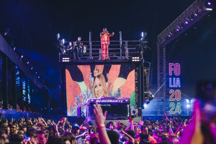 Logo depois, um dos artistas mais queridos pelo público tomou o trio. Bell Marques, lenda viva do axé, fez a galera explodir em euforia com os clássicos do Chiclete com Banana e os sucessos de sua carreira solo. E então, um dos momentos mais mágicos da noite. Quando Bell encerrou seu show, deixando todos com um gostinho de “quero mais”, o céu estrelado e a lua cheia iluminavam a avenida – prenúncio de um dos momentos mais esperados do ano.