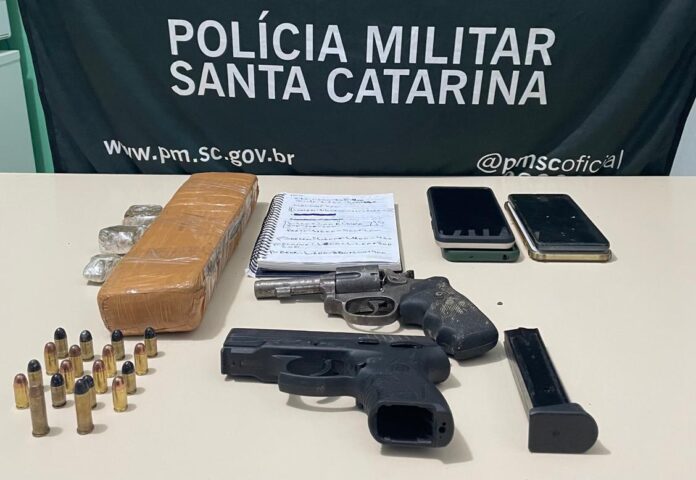 Na ação foi apreendido uma Pistola Taurus .380; um carregador de pistola;  munições calibre .380; revólver Cal.38; munições Cal.38; gramas de maconha; anotações do tráfico e aparelhos celulares.