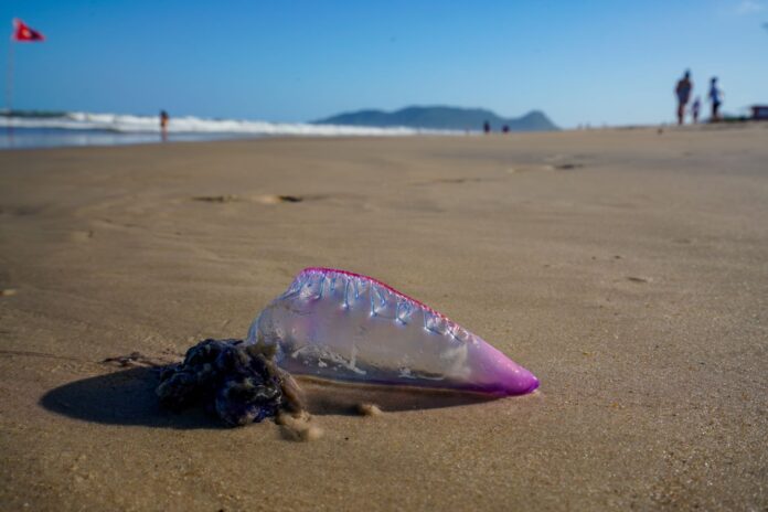 - Observe a sinalização e evite áreas com águas-vivas mortas na areia.