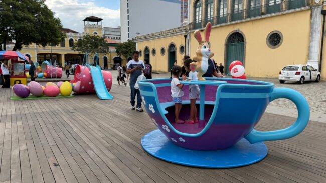A iniciativa transforma o Centro da Capital em um grande cenário de luz e significado, com ambientação temática na Praça XV de Novembro, no Largo da Alfândega e no Lago das Bandeiras. A decoração reúne coelhinhos, ovos de Páscoa, Menino Jesus, cenouras, flores e doces.