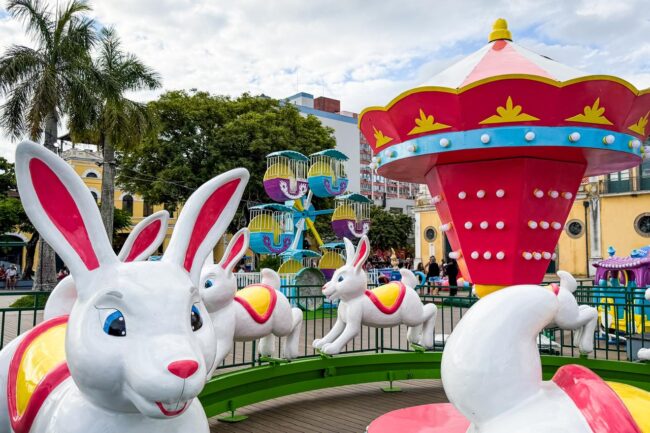 Os brinquedos da Páscoa Floripa 2026 – Fé e Alegria iniciam nesta sexta-feira, dia 27, e permanecem até a segunda semana de abril, com horários especiais para crianças de 3 a 8 anos. Entre as atrações estão carrossel, trenzinho, roda gigante e escorregadores. No dia da inauguração, funcionam das 18h30 às 23h. De quarta a sexta-feira, das 16h às 20h. Aos sábados e domingos, das 10h às 12h e das 14h às 18h.