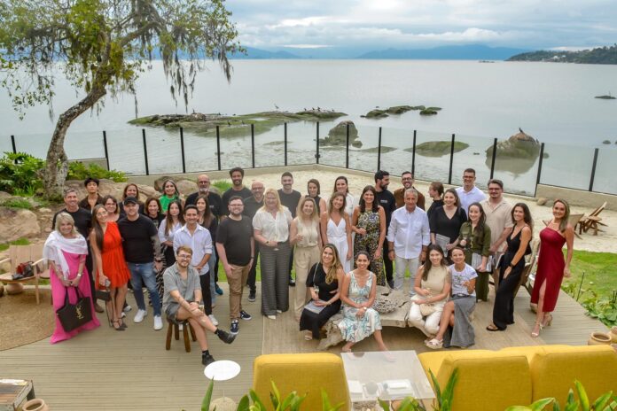 Profissionais e equipe da CASACOR / SANTA CATARINA, em Florianópolis, se reuniram na tarde de 16 de outubro para o lançamento do Anuário 2024 e anúncio do ambiente que foi selecionado para a capa da edição. O encontro foi no Divina Vista Hamburgueria, com um brinde e um passeio nos jardins da mostra. A arquiteta Bruna Tuon Sposito foi escolhida para a capa do Anuário, com seu Living Refúgio de Memórias.