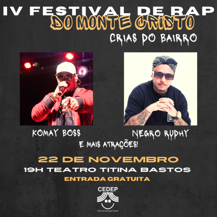 A edição será comandada pelos rappers Negro Rudhy e Komay Boss, grandes representantes da cena do rap em Florianópolis. Além disso, o evento contará com apresentações dos novos talentos do bairro, conhecidos como as Crias do Monte Cristo, mostrando que a cultura do rap continua viva e pulsante nas comunidades da região.