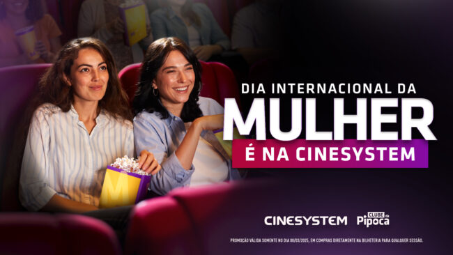 A ação é válida em todas as unidades da rede, para compras presenciais, na bilheteria. E para quantas sessões a cliente quiser, contanto que em cada uma delas uma pessoa pagante esteja acompanhando. Além disso, para as mulheres que fazem parte do Clube da Pipoca, programa de relacionamento exclusivo da Cinesystem, será possível resgatar uma pipoca Média por apenas 20 pontos.