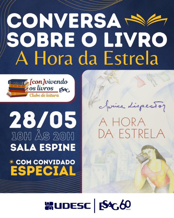 A conversa será sobre o livro “A Hora da Estrela”, da escritora Clarice Lispector. Qualquer interessado pode participar. Basta comparecer. O bate-papo também terá a participação especial do professor e psicólogo Gustavo da Silva Machado, autor do livro “Modos de Subjetivação, Loucura e Literatura – Experiência Macabéa”, que aborda temas centrais do livro à luz de suas próprias experiências pessoais.