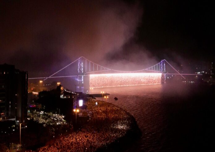 Para quem acompanhava o evento da Beira-Mar Continental, o Réveillon de Florianópolis foi ainda mais mágico. Durante dois minutos, o céu, o mar e a icônica ponte se uniram em um show grandioso que culminou com três minutos deslumbrantes da cascata de fogos – uma atração única no Brasil. A Ponte Hercílio Luz, emoldurada por uma iluminação especial, tornou-se o ápice da celebração, arrancando aplausos calorosos e emocionados da multidão.