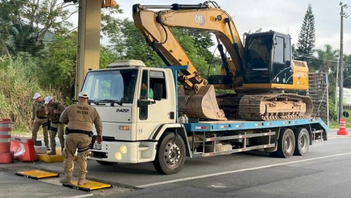 Durante a ação também foi flagrado um caminhão truque que transportava uma escavadeira hidráulica com mais de cinco toneladas de excesso de peso. Por ser uma carga indivisível, foi necessário realizar o transbordo da máquina para um caminhão compatível com a carga.