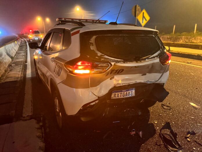 Um condutor embriagado colidiu na traseira de uma viatura do 21°Batalhão da Polícia Militar que atendia uma ocorrência de capotamento de um veículo no KM 3,700 da rodovia SC-401, em Florianópolis. O fato aconteceu por volta das 23h desta sexta-feira, 16.