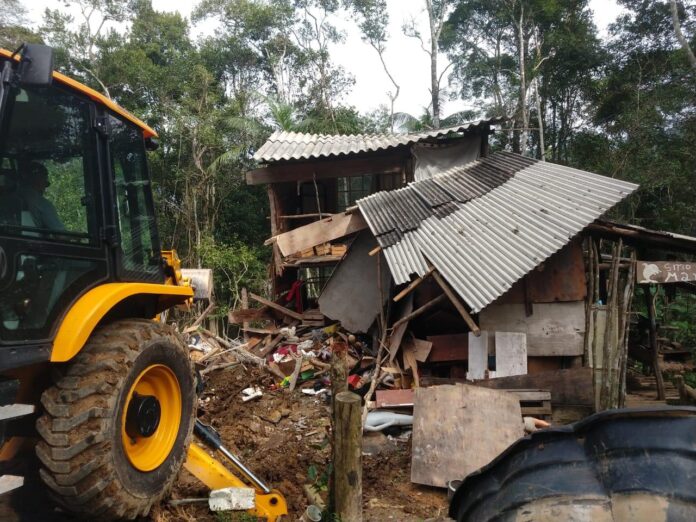 Oito construções irregulares em área de mata no bairro Serraria, em São José, foram demolidas na última semana de julho. A ação foi realizada pela Secretaria de Urbanismo e Serviços Públicos (SUSP), através do Setor de Áreas Verdes, com a participação da Polícia Militar e apoio da Secretaria de Infraestrutura.