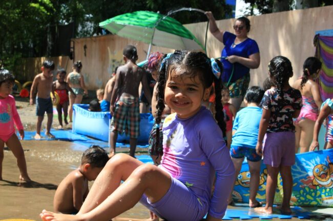 86 crianças participaram da brincadeira, acompanhados dos professores. Ao todo, durante o programa “Educar no Verão”, a unidade possui 93 matriculados de três a seis anos e 23 profissionais.