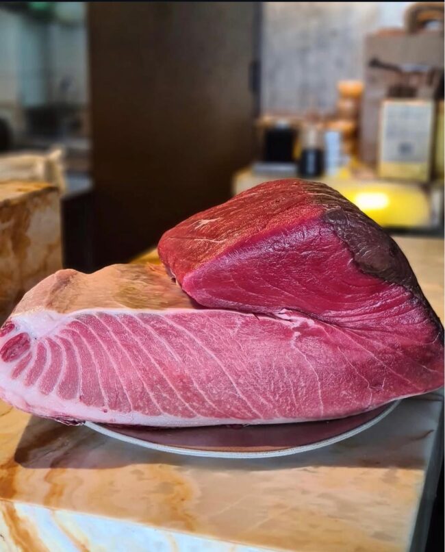 Entre esses ingredientes, o atum bluefin ocupa uma posição individual. Pescado no Pacífico Norte, no Mediterrâneo e no Atlântico, a espécie é a maior do gênero, com exemplares que podem chegar a 700 quilos, o que influencia diretamente na variedade e na qualidade dos cortes. “O atum bluefin se destaca principalmente pela capacidade de atingir um alto teor de gordura, o que traz uma textura única e praticamente incomparável”, explica Roni.