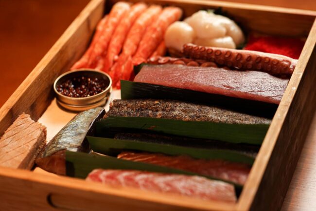 A tradição japonesa nomeou e hierarquizou cada corte do peixe. “Os mais valorizados e conhecidos são o akami, parte mais magra, o chutoro, parte intermediária com equilíbrio entre carne e gordura, e o otoro, parte mais gordurosa e nobre. Essas partes são especiais justamente pela variação de textura, sabor e intensidade que oferecem, assim cada corte entrega uma experiência diferente”, detalha o chef.