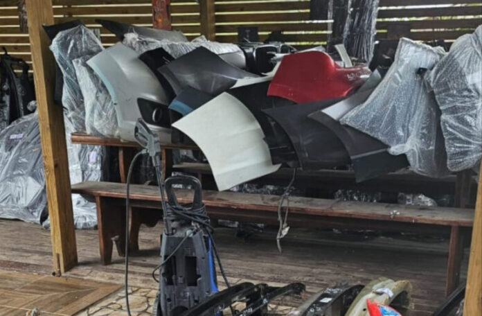 Durante as diligências foram localizadas diversas peças de veículos como JEEP COMPASS, VW POLO, GRAN SIENA, com restrição de furto/roubo em São Paulo (SP), Rio de Janeiro (RJ), em junho de2024, além de GM AGILE furtado em São José também em junho de 2024, além de peças com as numerações suprimidas.