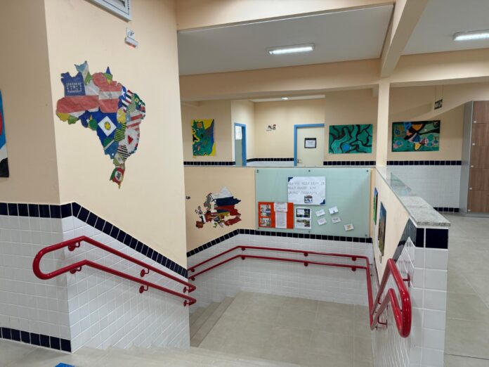 Houve reforma da estrutura existente com troca de cobertura, novas instalações elétricas e hidráulicas, substituição de todo revestimento cerâmico, instalação de novas portas, construção de novos banheiros nos piso inferior e superior, construção banheiros adaptados, e sala multiuso.