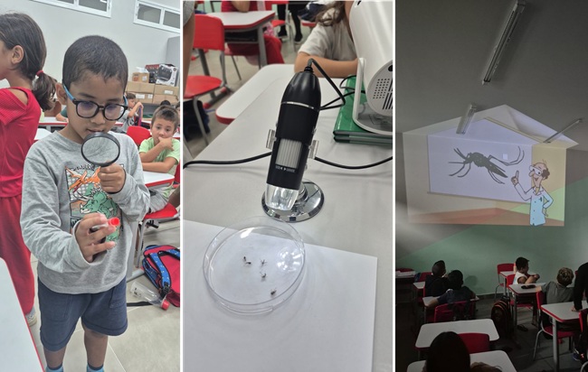 A primeira experiência em sala contou com a apresentação de um vídeo educativo e, em seguida, as crianças analisaram amostras reais do mosquito nas fases de larva, pupa e adulto, utilizando lupa e microscópio. Segundo o responsável pelas atividades, a experiência despertou curiosidade e grande engajamento da turma, principalmente ao observar as imagens ampliadas dos insetos.