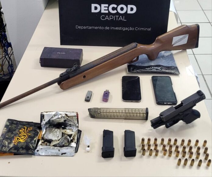 Durante o cumprimento das ordens judiciais, foram apreendidas quantidades de haxixe e cocaína, além de uma arma de fogo sem registro, equipada com carregador alongado, e diversas munições. Todo o material apreendido forneceu a materialidade delitiva e foi devidamente apreendido para integrar o procedimento investigativo em curso naquela especializada.