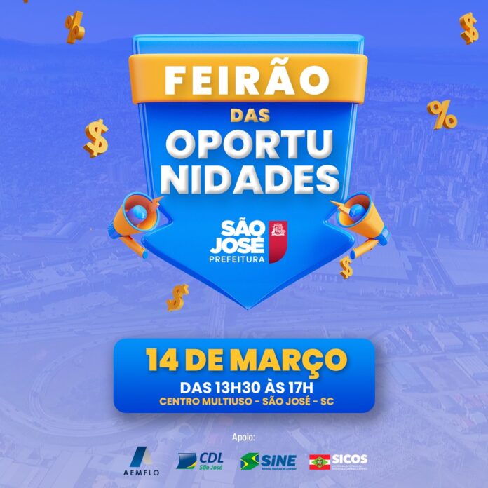 A Prefeitura de São José, por meio da Secretaria de Desenvolvimento Econômico e Inovação, realizará o 2º Feirão de Oportunidades nesta quinta-feira (14), das 13h30 às 17h, no Centro Multiuso. O evento integra a programação de aniversário de 274 anos de São José.
