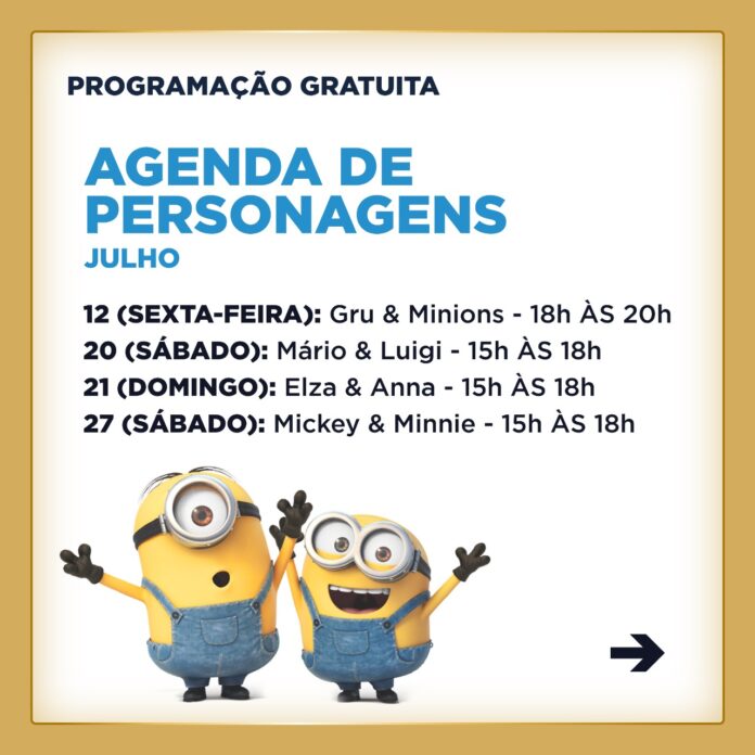 12 de julho: Personagens Meu Malvado Favorito, a partir das 18h.