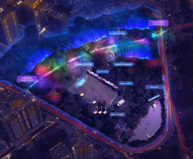 - Caminho da Magia – percurso sensorial que liga a Rua Felipe Schmidt às ativações e à Ponte Hercílio Luz. Sensores de presença ativam luz e som nas árvores à passagem do público.