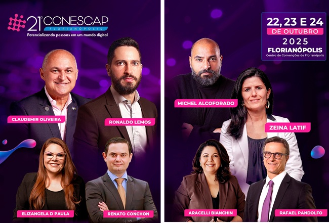 Nesta edição, promovida em parceria com o Sescon Grande Florianópolis, a programação conta com grandes nomes do cenário nacional e internacional, como Bernardinho, ex-jogador e técnico de vôlei; Claudemir Oliveira, ex-líder global da Disney e especialista em Clientologia; Tiago Brunet, treinador de pessoas e autor best-seller; Zeina Latif, economista, consultora e colunista; Ronaldo Lemos, advogado especialista em tecnologia, mídia e direito digital; entre outros palestrantes de destaque.