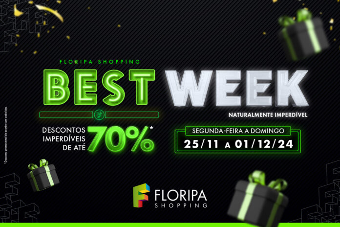 Até 1º/12 (domingo), o Floripa Shopping realiza a tão esperada Best Week, a oportunidade certa para os consumidores aproveitarem descontos exclusivos e planejarem as compras de fim de ano. Com ofertas que chegam a até 70% de desconto em diversos segmentos, a campanha promete movimentar o shopping e receber as famílias e compradores em um ambiente acolhedor, com decoração temática de Natal e repleto de atrações para toda a família.