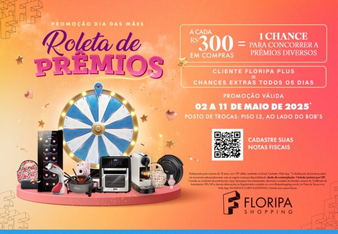 O mês de maio chegou trazendo aquele clima de carinho, gratidão e muitas homenagens. Afinal, está chegando o Dia das Mães, e para deixar a data ainda mais especial, o Floripa Shopping preparou uma campanha cheia de afeto e surpresas. Até o dia 11 de maio, quem passar pelo empreendimento vai poder participar da “Promoção Roleta de Prêmios – Dia das Mães”, uma ação pensada para celebrar quem é sinônimo de cuidado e presença constante: as mães.
