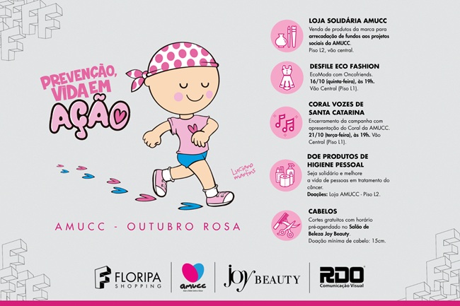 Durante o mês, o shopping também será ponto de apoio para quem deseja doar cabelos. Em parceria com o Salão de beleza Joy Beauty, serão realizados cortes gratuitos para doações a partir de 15 cm, mediante agendamento através do whatsApp 48 98847-5780. Já o encerramento da campanha será no dia 21/10 (terça-feira), às 19h, no vão central (piso L1), com uma apresentação emocionante do Coral Vozes de Santa Catarina.