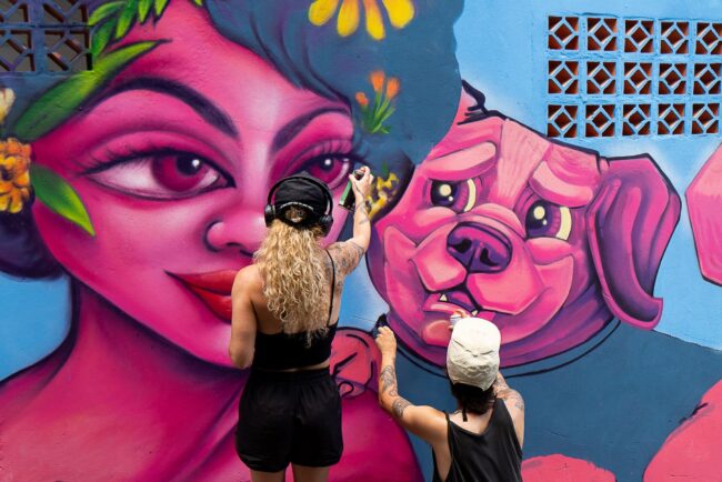 A Galeria de Arte do Mocotó transformou o bairro de Florianópolis em um grande espaço de criação, convivência e circulação cultural neste fim de semana. A iniciativa do Instituto Cidades Invisíveis levou a arte urbana para os muros da comunidade, reunindo 20 artistas em uma ação que integrou pintura coletiva, encontros com moradores e os tradicionais Rolês do Mocotó, caminhadas guiadas para apresentação das obras e troca direta entre artistas, público e território.