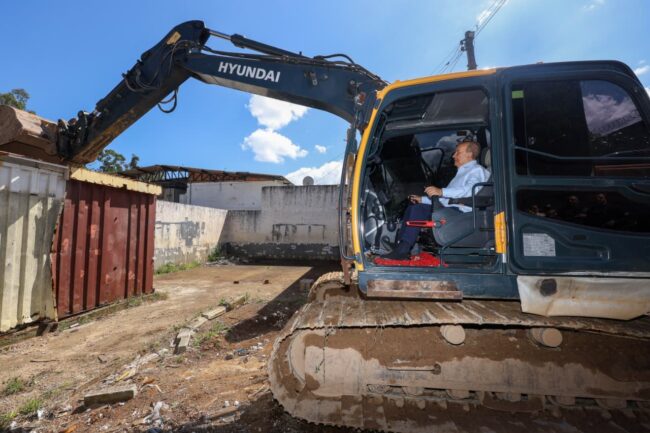 No comando de uma escavadeira, o governador Jorginho Mello deu início simbólico à demolição do Complexo Penitenciário da Agronômica, em Florianópolis, na quinta-feira, 4. Em seguida, acompanhado da secretária de Estado da Justiça e Reintegração Social, Danielle Amorim, o governador acompanhou a retirada dos 25 contêineres que, por quase duas décadas, chegaram a abrigar mais de 200 pessoas privadas de liberdade no local. Este foi o primeiro passo para a desativação total do presídio.
