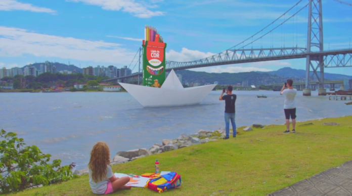 O Grupo Leonora inova ao lançar sua campanha de volta às aulas 2024 em meio a uma ação pautada na irreverência da tecnologia na Ponte Hercílio Luz, um dos principais cartões-postais de Santa Catarina, em Florianópolis. Com o apoio da produtora Estação 11, especializada em produção 3D, que deu vida à campanha de FOOH (Faux Out of Home), a marca reproduziu um barquinho de papel com uma caixa de lápis de cor da Leo&Leo para baixo da maior ponte suspensa do país.