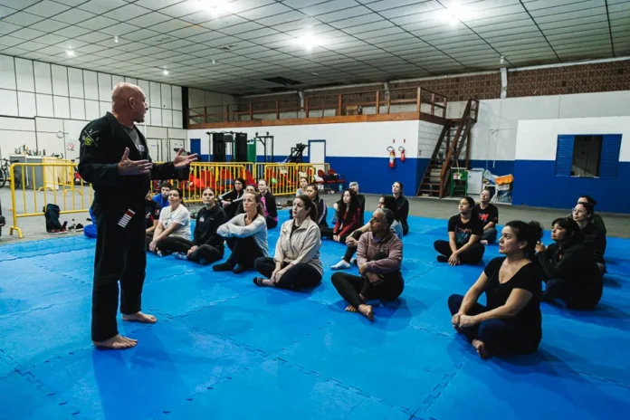 Em mais um dia de atividades do projeto Guarda por Elas, promovido pela Guarda Municipal de São José, que oferece aulas de defesa pessoal para mulheres, as participantes contaram com a presença do delegado de polícia aposentado e faixa-preta em jiu-jitsu e de judô, Alexandre Kale, que atuou por 32 anos na área da segurança pública.