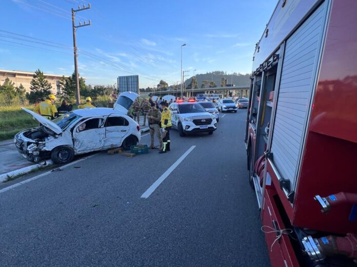 Na tarde deste domingo (6), às 16h35, o Corpo de Bombeiros Militar de Santa Catarina (CBMSC) foi acionado para atender a uma grave ocorrência de acidente de trânsito na Avenida Luiz Boiteux Piazza, nas proximidades do viaduto de Canasvieiras, em Florianópolis.