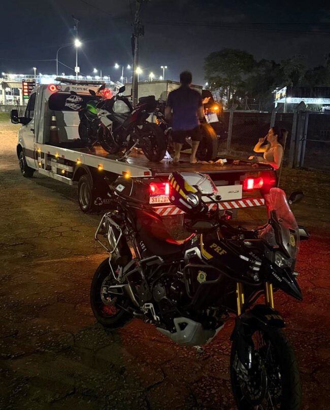 Na madrugada desta sexta-feira (24), policiais rodoviários federais do Grupo de Motociclismo Policial (GMP) da PRF realizaram três prisões envolvendo motocicletas de alta cilindrada na BR-101, em Palhoça. As ocorrências incluíram desde fuga em alta velocidade e embriaguez até o uso de placa decorativa para esconder a identificação real do veículo.