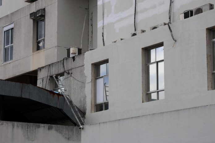 Além das melhorias em andamento no interior do Hospital Regional de São José (HRSJ), a unidade da Secretaria de Estado da Saúde (SES) também avança na modernização de sua área externa. A fachada do prédio está recebendo um tratamento completo, que inclui a remoção das pastilhas, a aplicação de material impermeabilizante para prevenir infiltrações e a instalação de novas janelas com persianas acopladas.