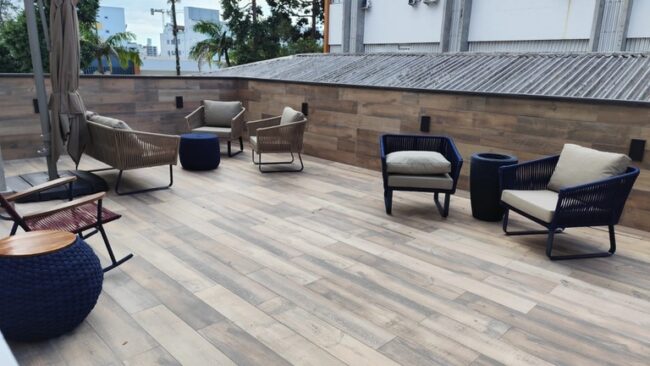 Em decorrência das obras do novo solário, também foi feita a adaptação da área de convivência da lanchonete e do espaço de espera no acesso ao refeitório do hospital. Essas áreas ficam exatamente abaixo do novo solário, e a intervenção nelas foi necessária para garantir acesso ao segundo andar pela parte externa do edifício durante a realização da obra.