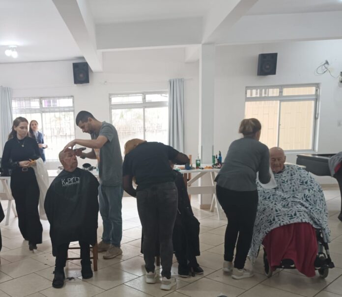 A atividade envolveu avaliações clínicas e orientações físicas, massagem facial, práticas integrativas e de bem-estar, corte de barba e cabelo, estética, além da entrega de doações de fraldas geriátrica e de latas de leite em pó.