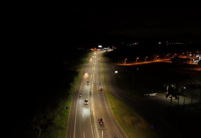 Na SC-401, o trecho contemplado vai do trevo de acesso a Jurerê Internacional, nas proximidades do Treino de Goleiro F7, até o Fort Atacadista, abrangendo do km 6,3 ao km 2,2. No local, foram instalados 116 postes compósitos, fibra de vidro e resinas poliméricas, cada um equipado com duas luminárias de tecnologia LED, garantindo maior eficiência luminosa, economia de energia e melhor visibilidade noturna.