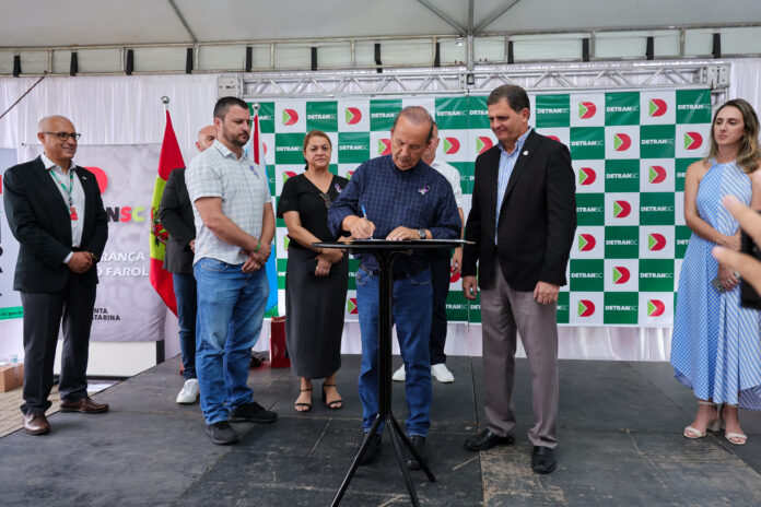 Também participaram da assinatura o presidente do Detran/SC, Ricardo Miranda Aversa, o secretário de Estado da Casa Civil, Kennedy Nunes, e autoridades presentes como o representante do SEST/SENAT e Federação das Empresas de Transporte de Carga do Estado de Santa Catarina (Fetrancesc), Maurus Fiedler.