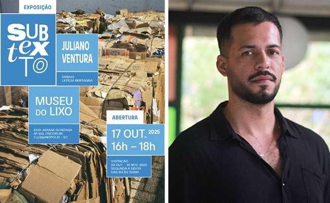 Você já prestou atenção no que está escrito nas caixas de papelão? O artista visual Juliano Ventura vem fazendo isso há pelo menos cinco anos e, na próxima sexta-feira, dia 17 de outubro, apresenta a exposição SUBTEXTO no Museu do Lixo, em Florianópolis. A mostra é composta por trabalhos em colagem, serigrafia, vídeo e objetos desenvolvidos em um processo de experimentação artística centrado nos textos e elementos gráficos retirados de caixas de papelão e colecionados pelo artista. Os trabalhos estarão em cartaz no bairro Itacorubi até o dia 14 de novembro com visitação gratuita.