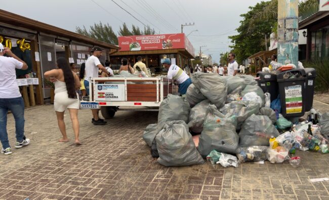 Os serviços de limpeza pública e coleta de resíduos das festas públicas de Réveillon mobilizam mais de 400 pessoas em Florianópolis. O contingente opera em três turnos desde a zero hora deste dia 1º de janeiro, atendendo as avenidas Beira-Mar Norte e Continental e os principais balneários.