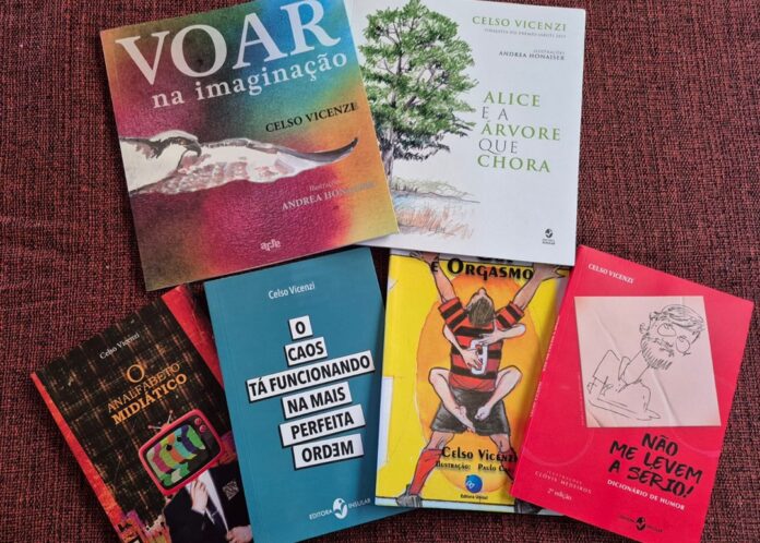 O jornalista e escritor Celso Vicenzi e a ilustradora e artista plástica Andrea Honaiser estarão sábado, dia 16 de agosto, na Sebo e Livraria Desterrados, para uma sessão de autógrafos e bate-papo sobre processos criativos. Serão relançados os livros infantis “Voar na Imaginação” e “Alice e a Árvore que Chora” – além dos livros de humor “Não me levem a sério!”, “Gol é orgasmo”, “O caos tá funcionando na mais perfeita ordem” e o de artigos “O analfabeto midiático”. A Livraria está localizada na Rua Tiradentes 204, no Centro de Florianópolis.