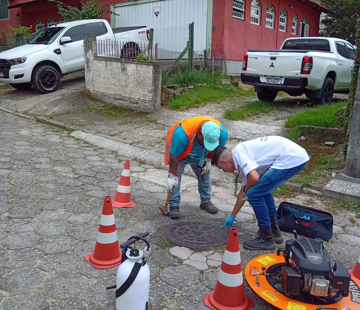 O objetivo é verificar infiltrações de água da chuva na rede de esgoto da CASAN. Esse trabalho é de complexo e se resultar na identificação de ligação inadequada o morador é notificado para correção do problema. Em caso de reincidência será multado.