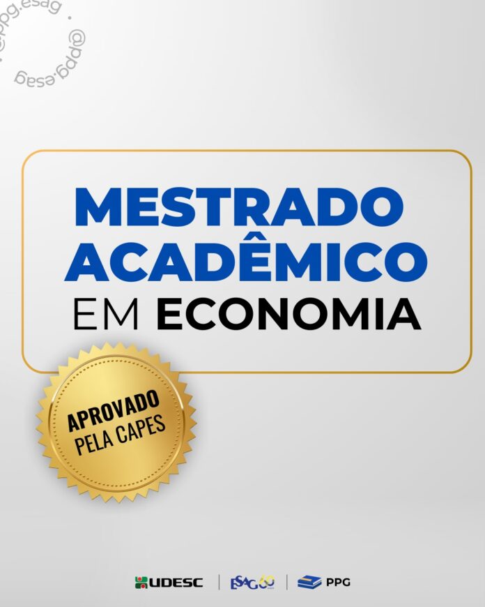A Universidade do Estado de Santa Catarina (Udesc) obteve aprovação federal para criação do Mestrado em Economia, que será oferecido pelo Centro de Ciências da Administração e Socioeconômicas (Esag), em Florianópolis. A aprovação do novo curso pela Coordenação de Aperfeiçoamento de Pessoal de Nível Superior (Capes), ligada ao Ministério da Educação (MEC), foi divulgada nesta sexta-feira, 20.